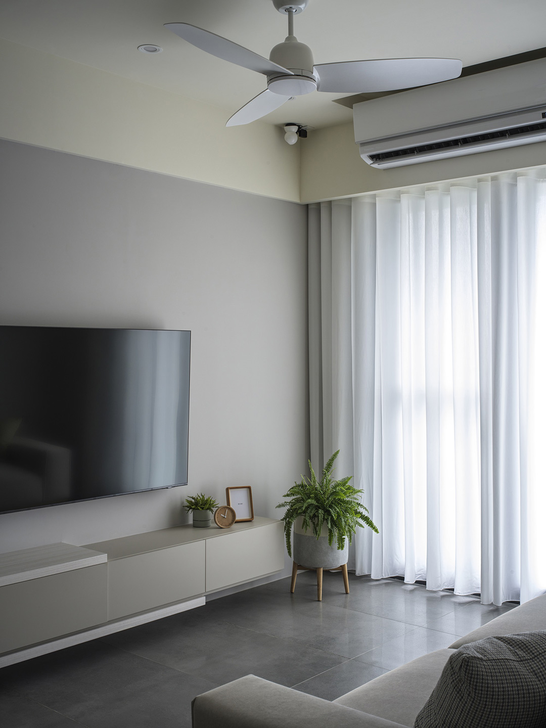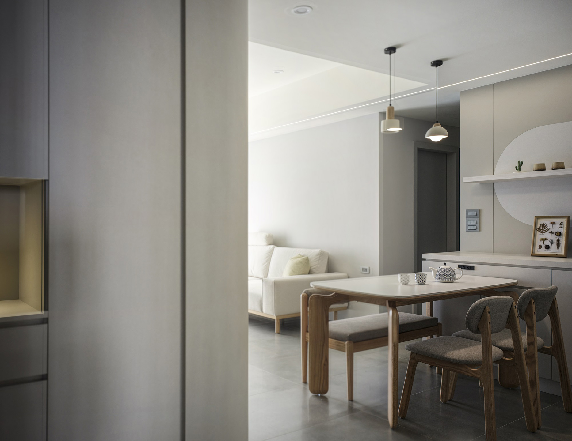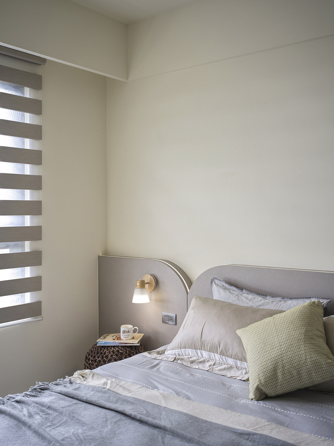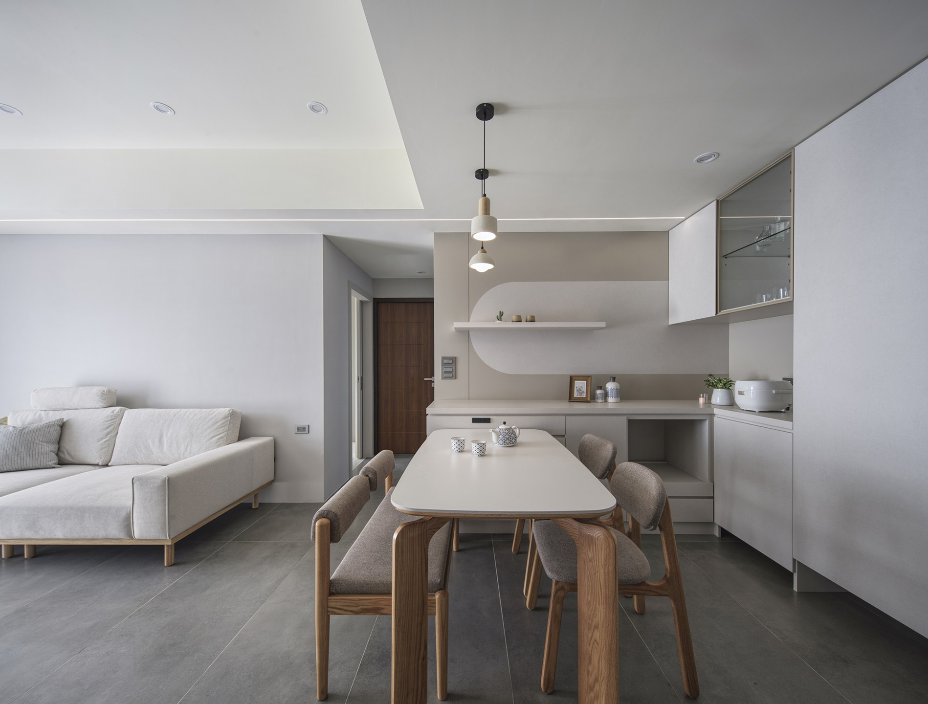 A New Life 這是一對年輕的夫妻,養了一隻可愛小貓的家。 拍攝當天因為膽小害羞貓咪還不能適應新環境, 所以就無法入鏡。 主人喜歡空間帶有暖意的淡淡大地色系及中性灰色的穩定感, 在討論的期間中, 喜歡木紋的先生及喜歡素色微有紋理的太太意見相互碰撞, 在多次取捨後,才終於定案。 電視櫃和落地窗中間預留未來要放置的貓跳台, 面對沙發的左側則預留朋友要送給他們的自動貓砂機, 餐桌旁的餐櫃下凹洞是放置貓咪吃飯及喝水的地方, 貓咪用餐區上面是一個大抽屜, 作為貓咪的保健品、零食櫃…等, 當然電源也是要預留好。 入住後, 主人說他很愛待在餐櫃上的層板, 在一開始的結構設計就有先考量到載重的問題囉! 進入主臥後, 原本開門的配置, 為了讓浴室外門口的化妝檯在使用上不受開門影響, 調整為拉門的設計。 拉門上面設計了貓門, 可惜目前膽小的貓咪仍未克服心理障礙。 空間以弧形設計延展,柔化了僵硬線條, 純淨而舒適~